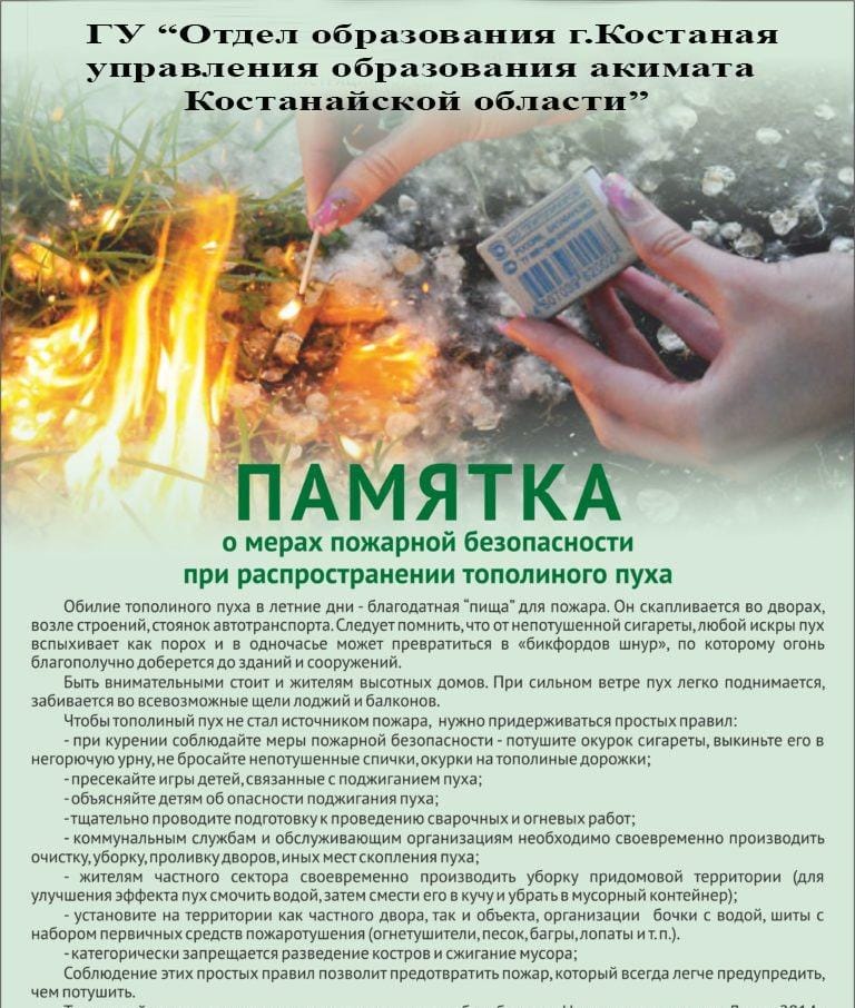 С приходом лета на земле появился «летний снег» — тополиный пух. Этот легковоспламеняющийся природный материал скапливается во дворах организаций образования, вдоль труб теплотрасс, возле строений, стоянок […]