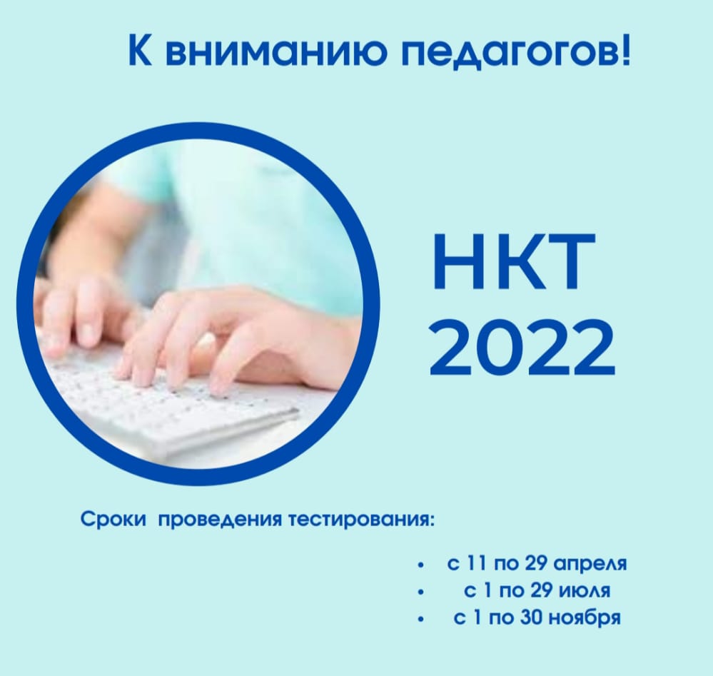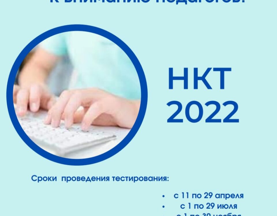 Уважаемые коллеги!Сообщаем, что с 11 апреля 2022 года началось Национальное квалификационное тестирование педагогов.Напоминаем, что при нарушении правил прохождения тестирования педагог не допускается к прохождению аттестации сроком […]
