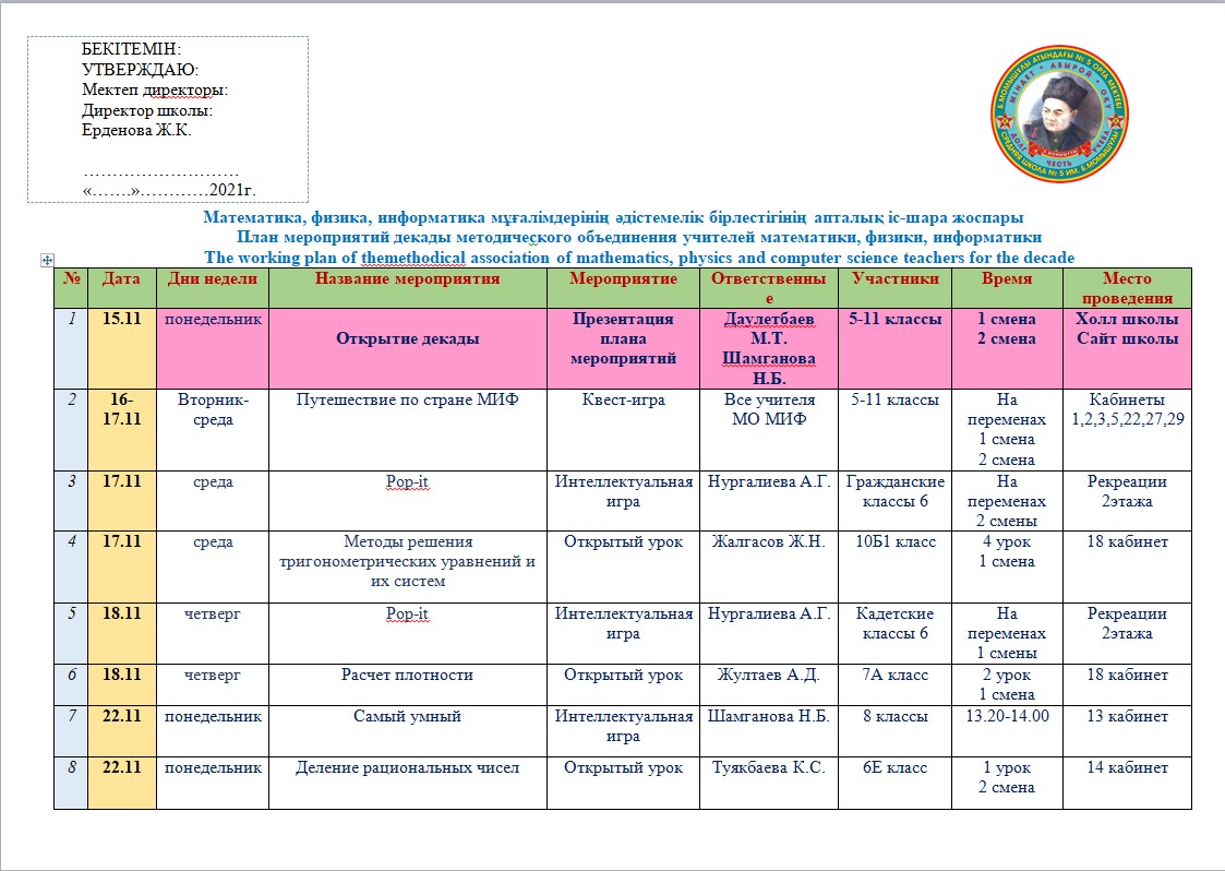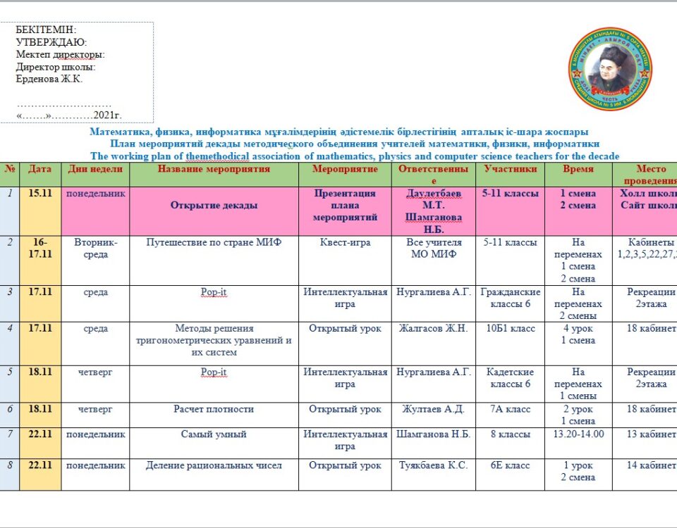 В соответствии с письмом ГУ «Отдел образования города Костаная» Управления образования акимата Костанайской области от 12 ноября текущего года № 03-11/5606 15 ноября на базе нашей […]