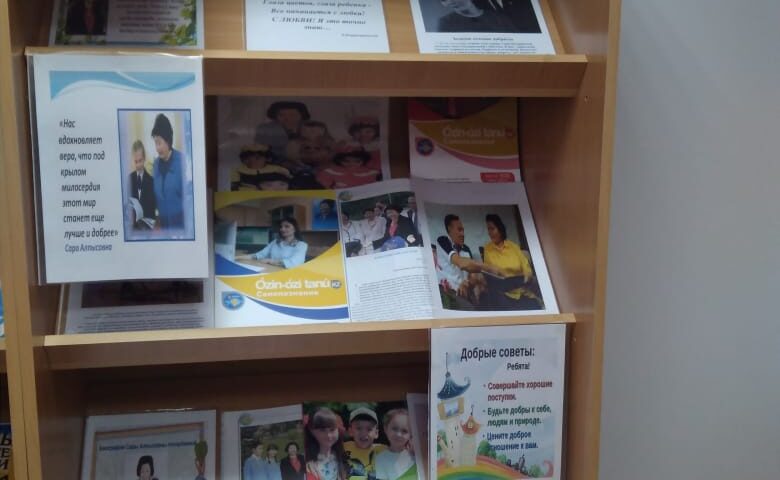 Сара Алпысқызы қоғамға балаларды адамгершілік-рухани тәрбиелеу мен тәрбиелеуге, жас ұрпақтың құқықтары мен заңды мүдделерін қамтамасыз етуге байланысты мәселелерді шешуде нақты көмек көрсетеді.«Өз қызметінің нәтижесінде« Бөбек »қоры бүкіл әлемге танымал болды, ал Сара Назарбаева Дүниежүзілік денсаулық сақтау ұйымы сыйлығының лауреаты атағына ие болды. Сара Алпысқызы жетім балалар мен мүгедек балалардың құқықтарын қорғау саласындағы тынымсыз жұмысы үшін көптеген марапаттарға ие. 3 ақпанда Сара Назарбаеваның мерейтойына орай №5 Б.Момышұлы атындағы орта мектебінде кітапханашылар «Алтын жүректі әйел» атты кітап көрмесін және «Мейірім төгетін ана» тақырыптық сөре; ұйымдастырды өзі- өзін тану кабинетінде.