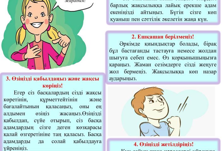 Біз болашаққа жауаптымыз27.04.2021Жасөспірімдерге арналған жадынама «Қалай эмоционалды тұрақты болу керек»29.04.2021 Жасөспірімдерге арналған жадынама «Өзін-өзі бағалауды және өзін-өзі сүйуді қалай арттыруға болады?» Share admin Добавить комментарий Отменить ответВаш адрес email не будет опубликован. Обязательные поля помечены *Комментарий * Имя * Email * Сайт Сохранить моё имя, email и адрес сайта в этом браузере для последующих моих комментариев.