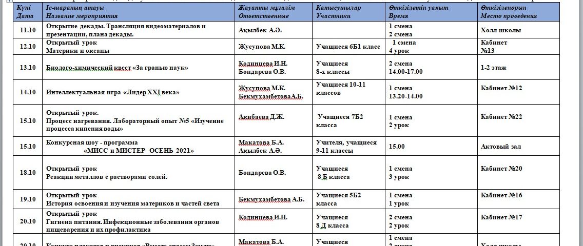 11-22 қазан аралығында Б. Момышулы атындағы #5 жалпы білім беретін мектепте биология және химия пәндерінен онкүндік өтеді.