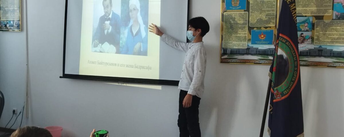 Біздің мектепте Ахмет Байтұрсыновтың 150 жылдығына арналған «Ұлт мұғалімі» тақырыбында сынып сағаттары өтті. Мемлекет және қоғам қайраткері, «Алаш» партиясының мүшесі, ағартушы, ғалым, түркітанушы, ақын және аудармашы – Ахмет Байтұрсынов.