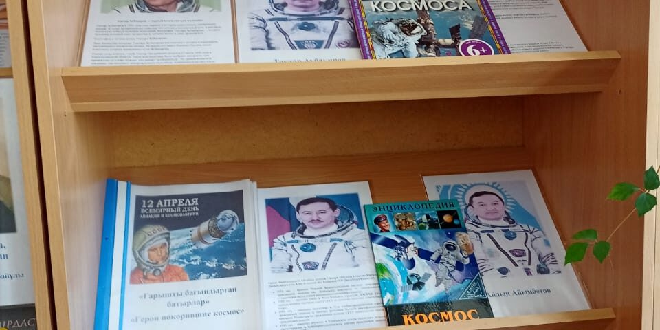 Мектеп кітапханасында «Ғарышты бағындырған адамдар» атты кітап көрмесі дайындалды. Көрме астронавтика тарихымен және біздің күндердегі Жерге жақын ғарыштың дамуымен таныстырады. Онда ұсынылған кітаптар мен мақалалар ғарышкерлердің өмірінен, олардың күнделікті қызметі мен ерліктерінен, ғарыштық техниканың дамуы туралы қызықты деректерді білуге көмектеседі.