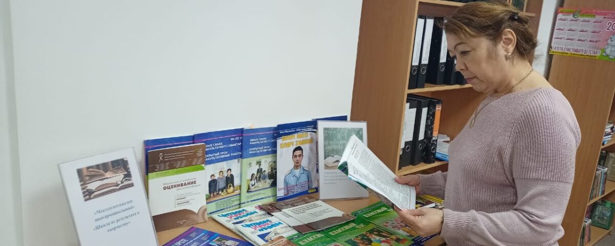 Кітапханашылар «Мектеп: нәтижеден шығармашылыққа», «Тәжірибемен бөлісу» кітап көрмелерін дайындады. Онда ұсынылған кітаптар, «Сынып сағаты», «Оқимыз, оқып, ойнаймыз», «Ашық сабақ факультативтік жұмыс», «Білім кілті», «Ғылымға кіріспе оқушылардың ғылыми жобалары» журналдары мұғалімге сабақты, сынып сағаттарын өткізуде, мектеп мерекелеріне дайындалуда көмек береді.