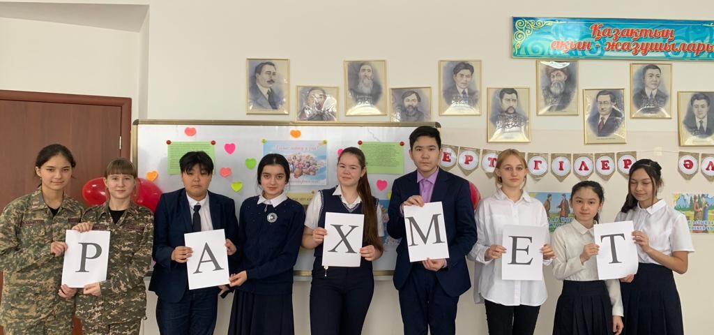 1 Наурыз күні мектебімізде онкүндік жоспарына сәйкес, қазақ тілі мен әдебиеті пәнінің мұғалімдері Муздибаева Р.Т., Досумова Г.Т. алғыс айту күніне арналған «Ел алғысын алсаң елеулісі боларсың» сайысын өткізді. Сайысқа 7 «А», «Б2», «В», «Г», «Д», «Е» сынып оқушылары қатысты.