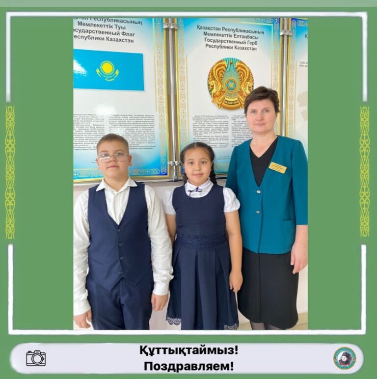 2 орын – Ксумбаева Камила, Хлюпко Назар. Жетекшісі: Бондарева Ольга Викторовна.
