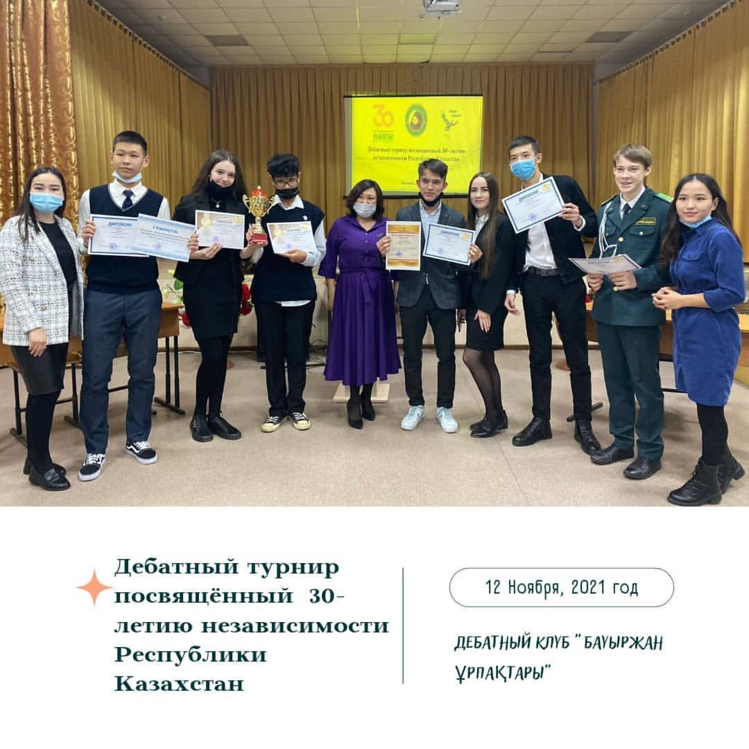 2022 жылдың 12 қарашасында Қазақстан Республикасы Тәуелсіздігінің 30 жылдығына арналған бірінші мектеп дебат турнирі өтті.