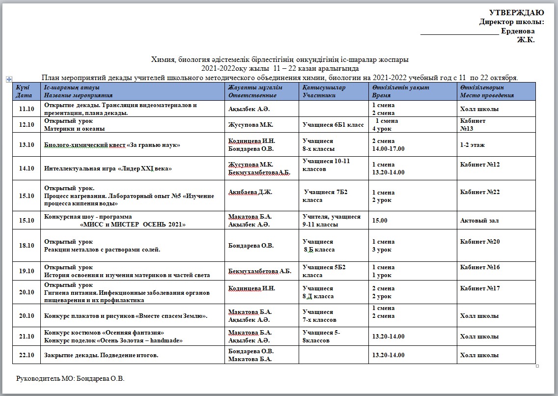 11-22 қазан аралығында Б. Момышулы атындағы #5 жалпы білім беретін мектепте биология және химия пәндерінен онкүндік өтеді.